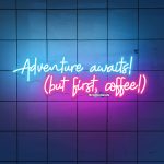 Start your day on a cozy note with our “Adventure Awaits, But First Coffee Neon Sign.” This charming coffee neon sign combines the excitement of adventure with the comfort of a steaming cup of coffee.